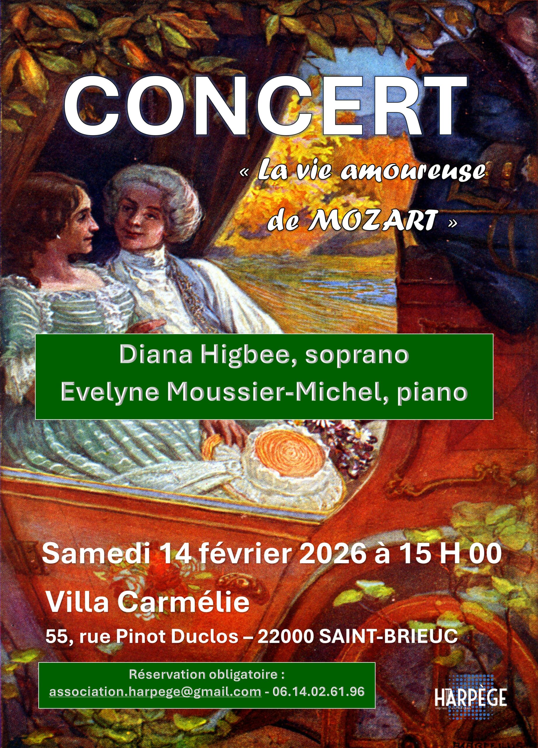 L’association HARPEGE, fondée à Paris en 1989 et domiciliée en Bretagne depuis 2011 réunit des artistes de haut niveau pour des programmes ouverts à plusieurs expressions, favorisant les rencontres entre les différents visages du domaine artistique ; elle est également largement impliquée dans la création d’œuvres nouvelles et aborde des répertoires très variés.